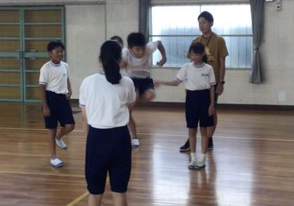 先生から「真ん中で跳ぶ大切さ」「失敗して上手くなるから何度も挑戦しよう」と話がありました。