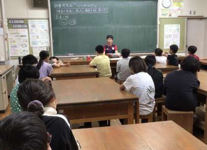 4年2組さん、読書感想画を描くために、先生が物語を読んでいます。