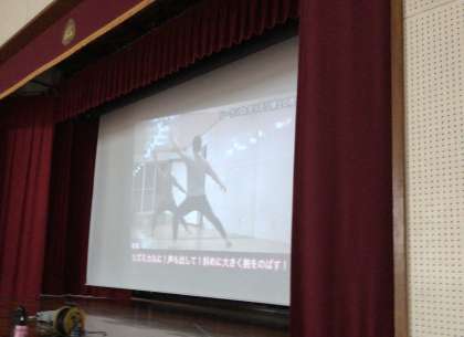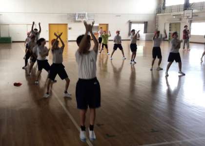 体育館では6年2組さんが「ソーラン節」の練習をしていました。