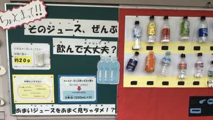 そこには、いろんな種類のペットボトルの飲み物が掲示されており、砂糖が何グラム入っているかも書かれていました。