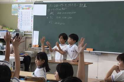 2年生 学活の様子です 公開日 2025/09/11 更新日 2025/09/11 校長室から 2年2組さんでは2人の男の子が前に出て、パワーアップパーティの計画を考えていました。 まずは幾つの遊びをするかを相談中です。 2つやると、1つを何分やれるのか?確認しながら考えていました。 この後はどんな種目をやるかを考えるみたいです。