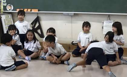 2年1組さんでは「みんなでムシさんになる」動きをして、遊んでいました。