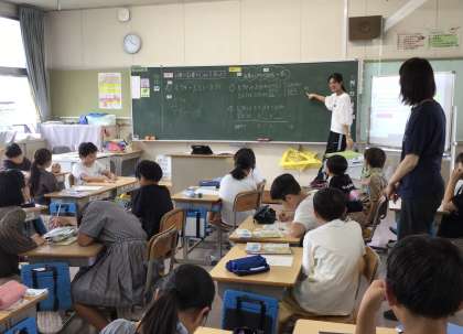 4年1組さん、2組さん、ともに同じ小数の筆算を勉強していました。