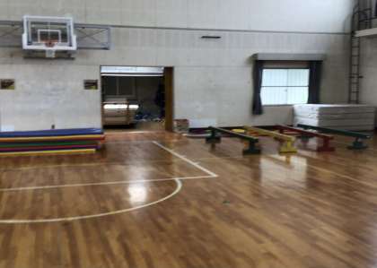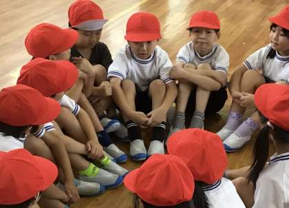先生たちが体育館の後ろに「平均台」「マット」「フラフープ」などを準備してくれました。