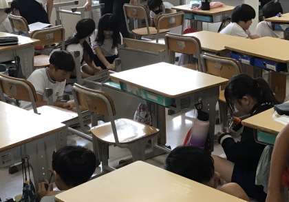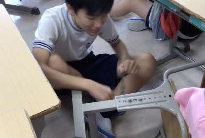 6年生は今日、身体測定を行ったので、1組さんでは机・椅子の高さを調整していました。