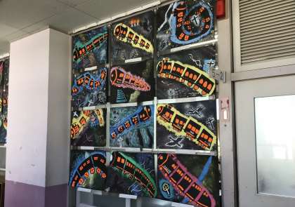 5年2組さん、読書感想画を先生が廊下に掲示してくれました。 みんなの作品をどうぞ。