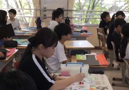 6年2組さん、読書感想画作りです。