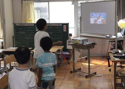 動画を見ながら、白組・赤組に分かれて練習しました。
