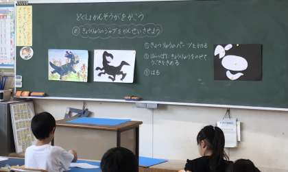 2年1組さん、2組さんでは読書感想画の作品作りに取り組んでいました。