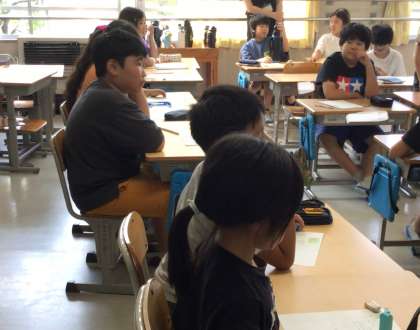 4年2組さん、算数の授業で「まとまりをつくって」という単元の勉強中でした。