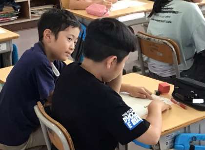 4年1組さん、算数の授業で2組さんと同じ問題に取り組んでいました。