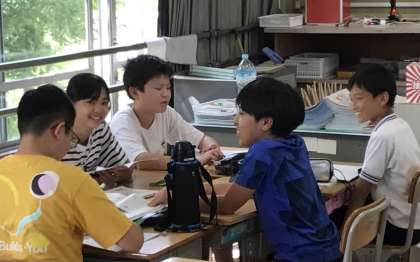 6年2組さん、国語の授業でグループごとに話し合いの勉強です。