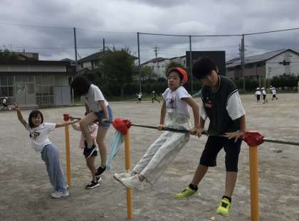鉄棒でグルグル回ったり、ドッチボールで熱戦を繰り広げたりしていました。