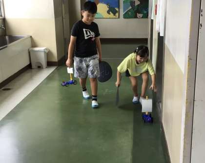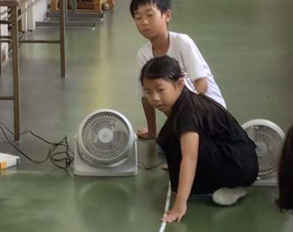 4時間目は準備した扇風機を使って、何m動くか、実験するそうです。