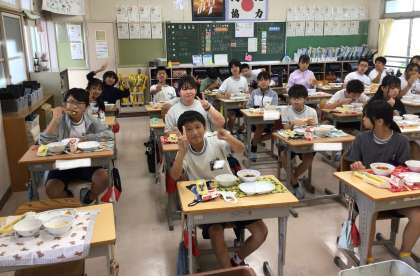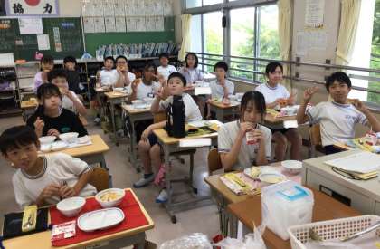 6年2組さんの給食の様子です。