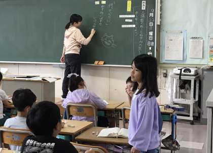 2年生も、話を聞くみんなに身体を向けて発表しています。