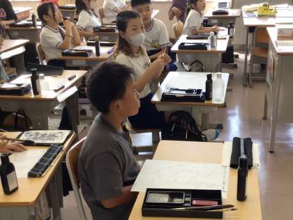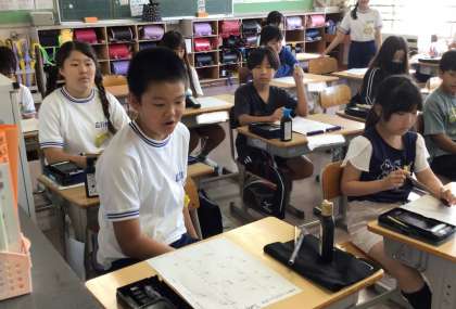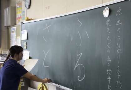 5年2組さん、書写の授業で「ふるさと」を書くそうです。