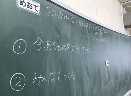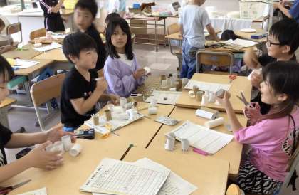2年2組さん、おもちゃをパワーアップさせるため、グループごとに作ってみたり、話し合ったりしていました。