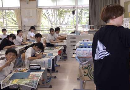6年2組さん、読書感想画の授業です。