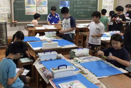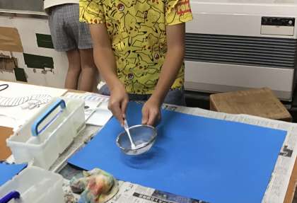 4年2組さん、読書感想画「りゅうのなみだ」の作品作りです。