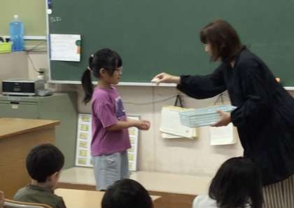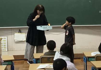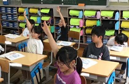 1年1組さん、国語の授業で「かいがら」というお話の勉強をしていました。