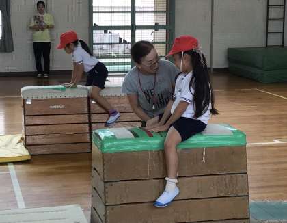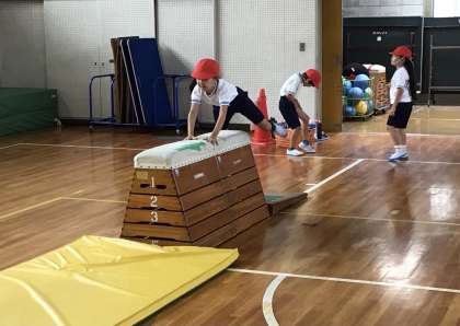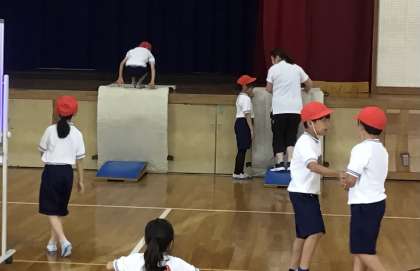 「もうちょっとで上の段に足の裏で乗れそうだね」