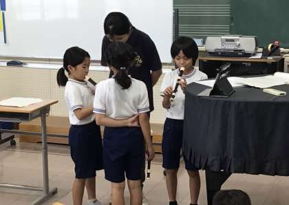 3年2組さん、音楽の授業です。 リコーダーを使って、聖者の行進を練習中でした。