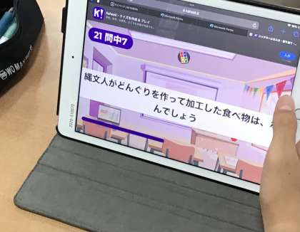 6年2組さん、社会の授業で友達の作った問題をカフートを使って、解いていました。