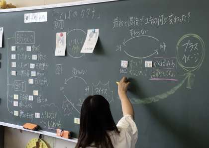 5年生は「ことばのカタチ」という教材を通して、姉妹、特に妹の姉に対する思いがどう変化したのかを考えていました。
