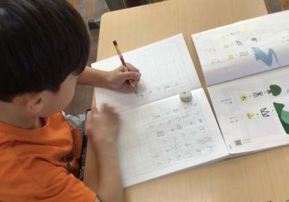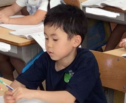1年1組さんでは、本日の5時間目に「上」「下」という漢字を習いました。