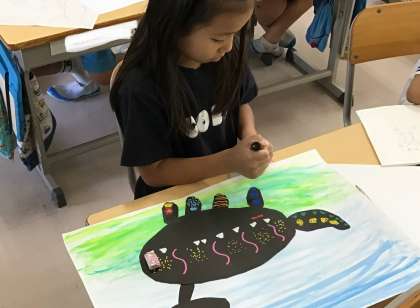 2年1組さん、読書感想画作成の様子です。