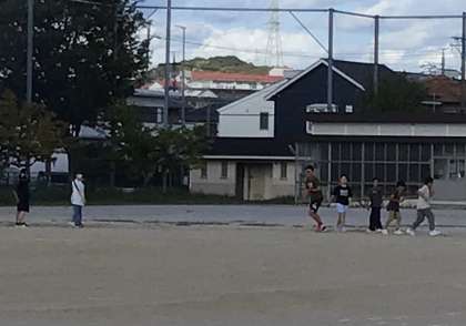 運動委員会のみんなが、明日9月30日の「にこにこタイム」に実施予定の全校で遊ぶ「指定おにごっこ」のリハーサルをしていました。