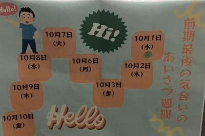 今週から始まった集会・生活委員会主催の「気合いのあいさつ週間」