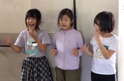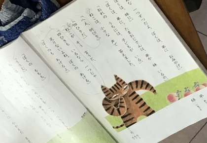 2年2組さん、ニャーゴというお話を3人〜4人1組で、手足の動きや表情を工夫して、音読をしていました。