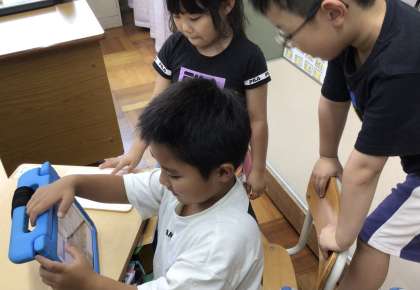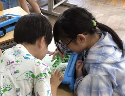 学習用タブレットで写真を撮ったり、画面を拡大したりするのはお手のものです。