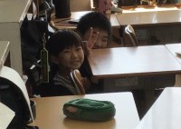 後ろむきで帽子をかぶっている子は、用具係の子です。