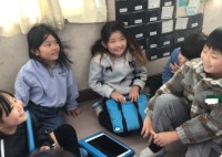 4年1組さんは短い時間で「ふりかえり」ができるようにタブレットに録音する方法をとっていました。3人での10秒ふりかえりを終えると、1分ぐらいタブレットに話しかける時間が取られていました。