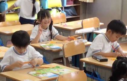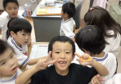 前に出ている子は、トロロ班のお兄さん、お姉さんを確認中でした。