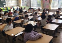今日が最終日、その5時間目ということで1年1組さんではメッセージを書いていました。