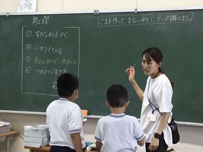 今日は厚紙を自分の好きな形に切って、コマを作ってみるそうです。
