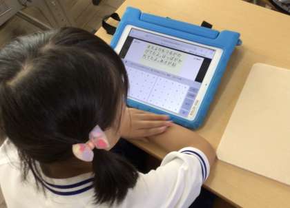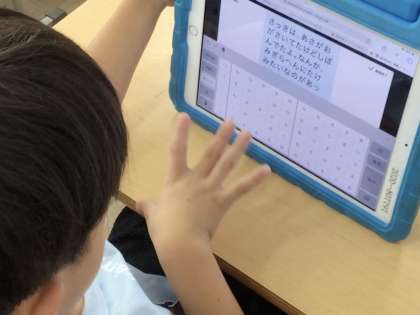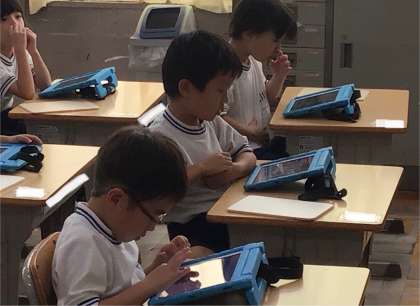 1年2組さん、生活科の授業であさがおの観察をしました。