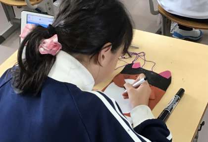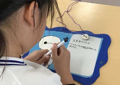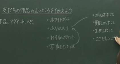 自分の作った作品の工夫したところ、苦労したところ、気に入っているところなどを記入していました。
