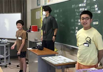 6年2組さん、応援団長が前に出て、クラスみんなで応援歌の練習をしていました。