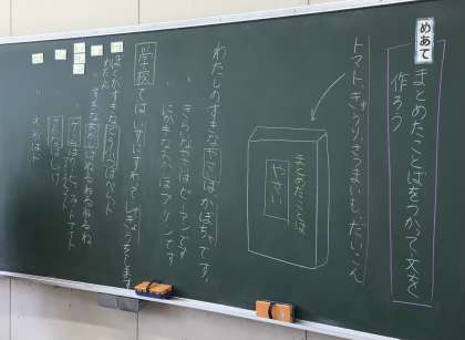 2年2組さん、「まとめたことばをつかって文をつくろう」ということで、文章を考えました。