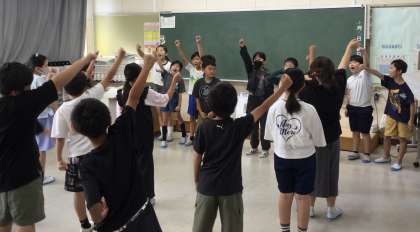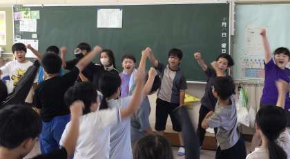「隣の教室から聞こえてくる声に負けないぞ」と気持ちの入った応援を続ける4年生のみんなでした。