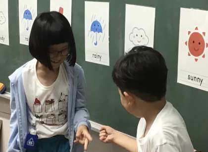 黒板には天気をあらわすイラストが貼ってあります。