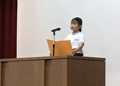 始業式では児童代表の話を2年生、6年生の女の子がしてくれました。