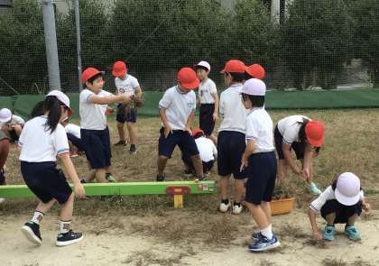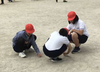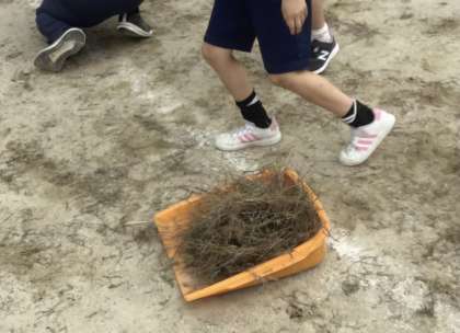 気持ちの良いグランドで運動会が行えるように、クラスごとに草取りをしたり、石を拾ったりしていました。