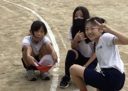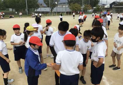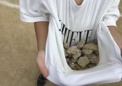 石を手一杯に集めている子もいましたが、中には赤白帽子や自分の服を袋がわりにして、集めてくれている子もいました。洗濯でご苦労かけたり、服が伸びてしまったりしているかもしれません、ごめんなさい。