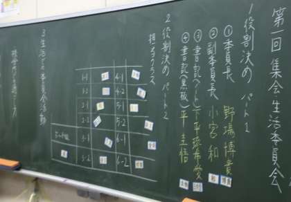 委員長、副委員長、書記といった役割を集まった5・6年生のみんなと先生で決めていました。